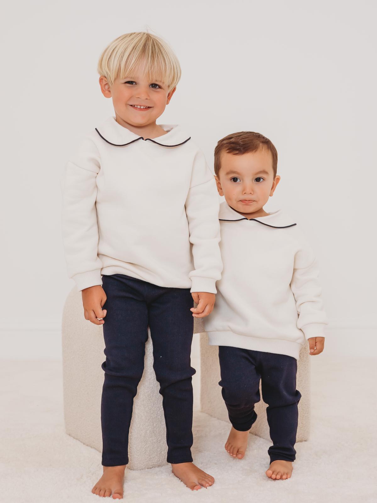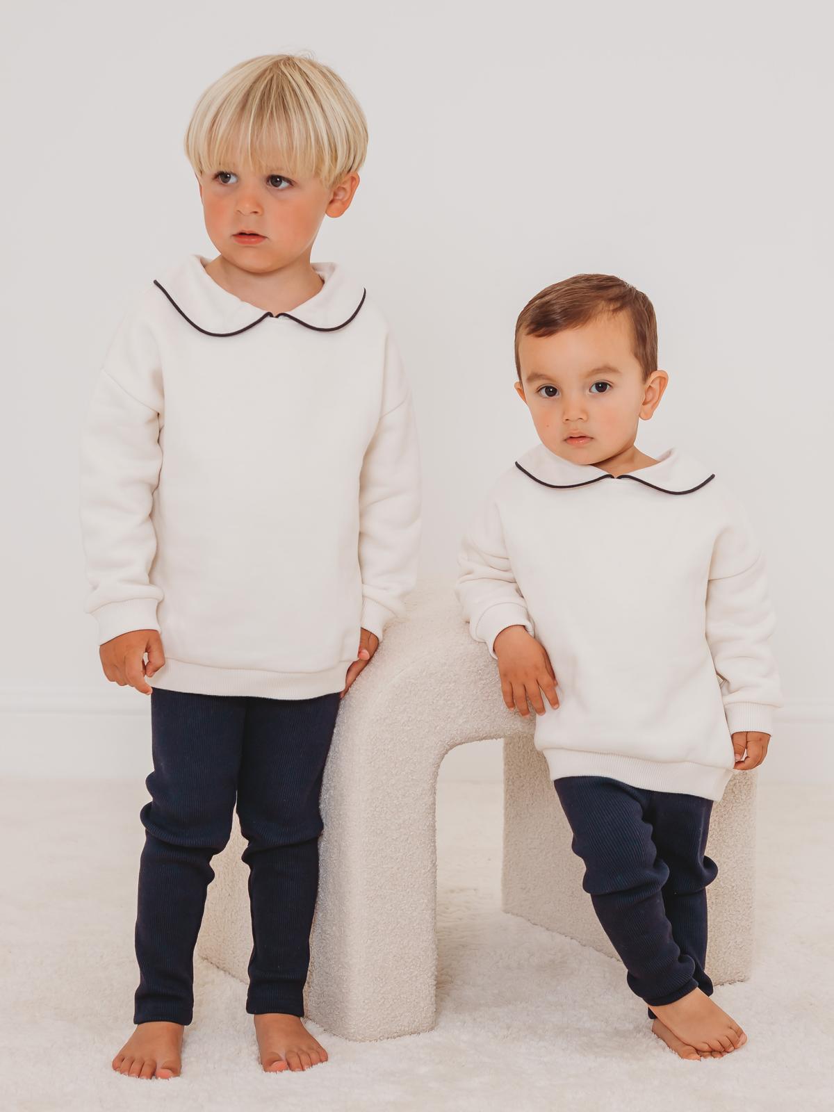 Introducing 'Ari', the most beautiful 2 piece suit from our R&A everyday essentials. Drop shoulder sweatshirt with peter pan collar, edged in contrast colour, dropped shoulder & oversized fit. Paired back with skinny fit ribbed leggings