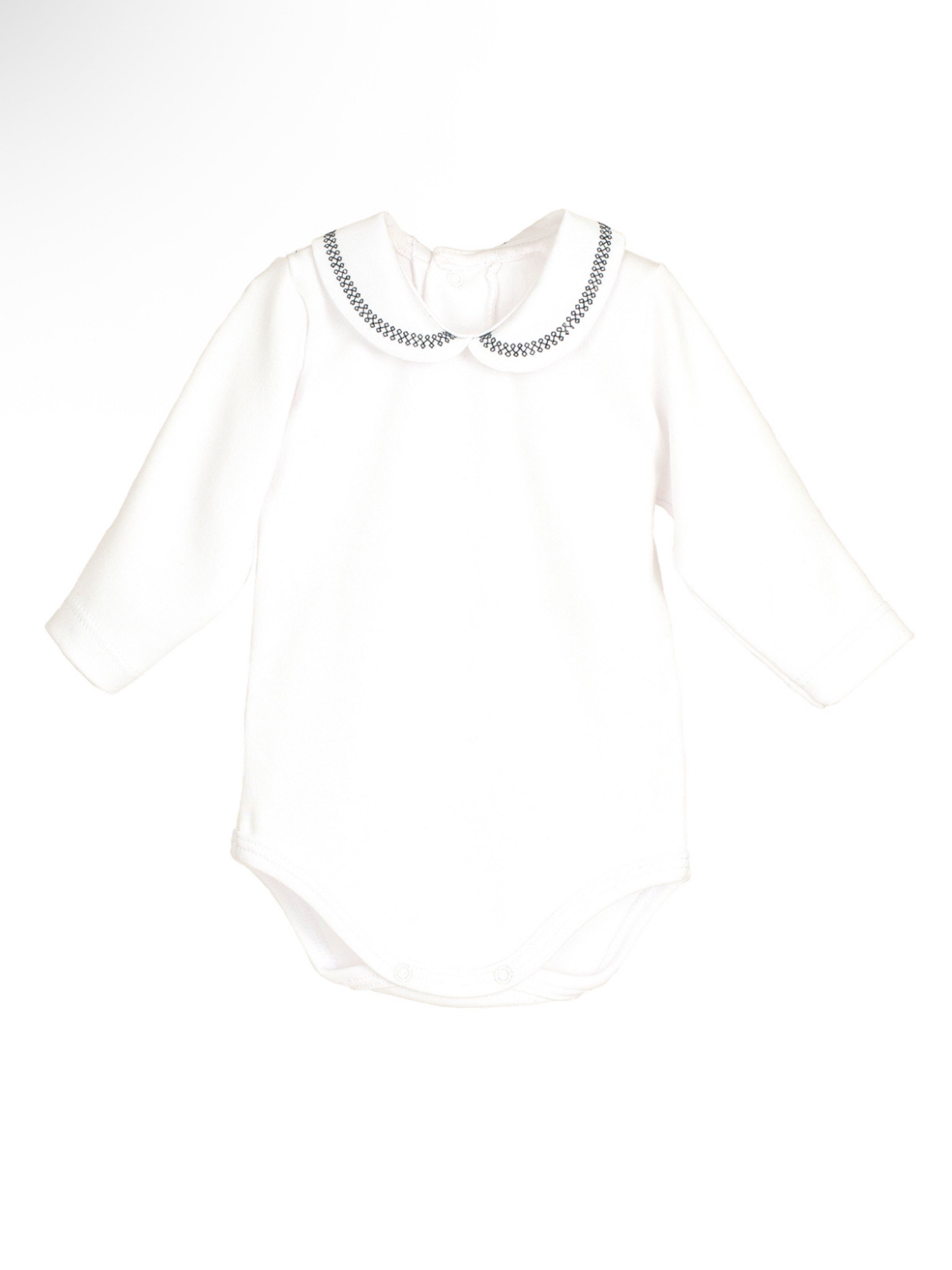 Calamaro Baby White & green Peter Pan Collar Embroidered Vest