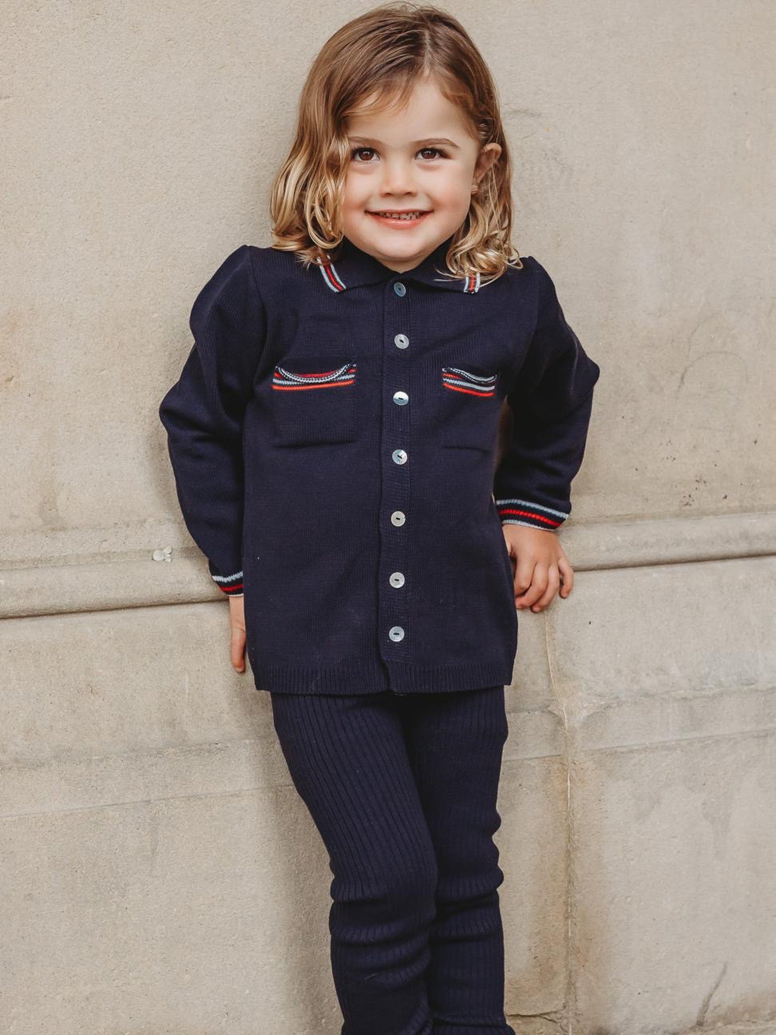 Introducing our 'Buttoned Up Collection, a stunning knitted 2 piece set. Knitted polo collar cardigan with tipping to the collar, pockets & sleeves. Mock pearl buttons down the front, paired back with skinny ribbed leggings