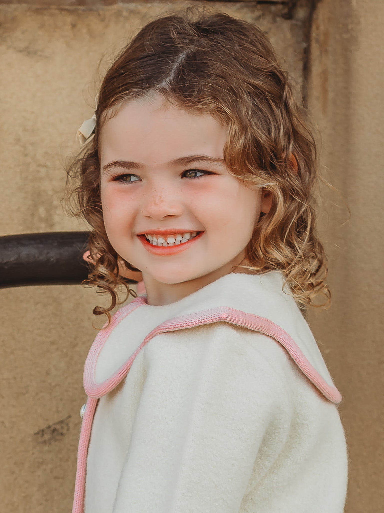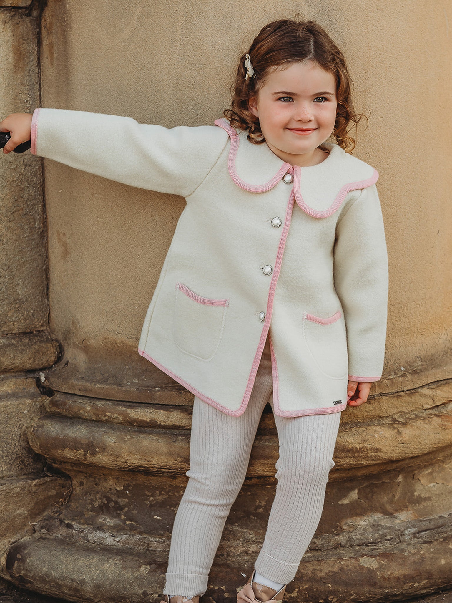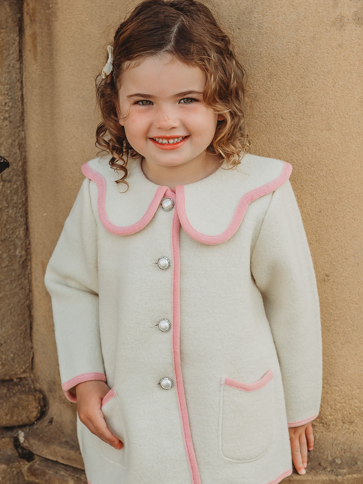 Marae Ivory & Pink scallop collar Merino Wool Coat