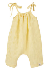 Perfect everyday wear from Spanish brand Calamaro Baby. A short-length style jumpsuit for girls with tie shoulder fasten in a beautiful soft and lightweight cheesecloth material.